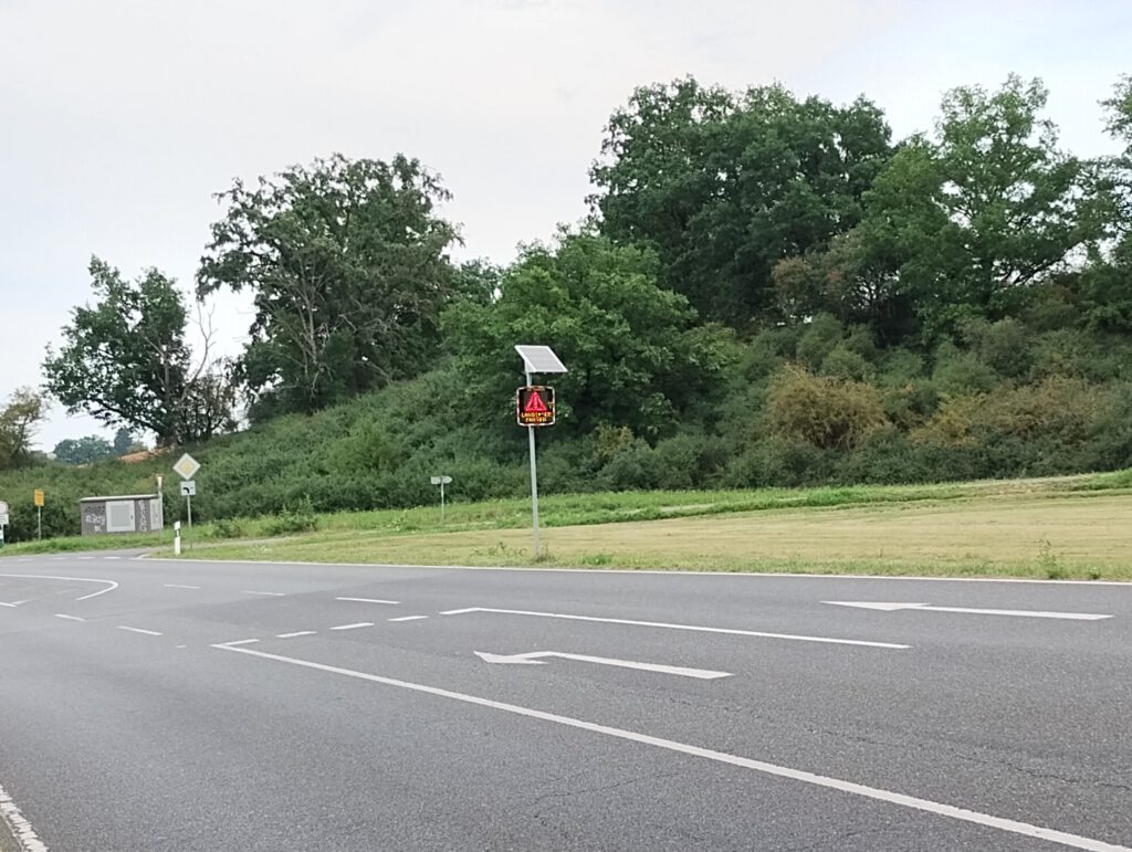 An mehreren Ortseingängen wurden in den letzten Jahren solare Geschwindigkeitsanzeigen installiert. Wir belassen es aber…